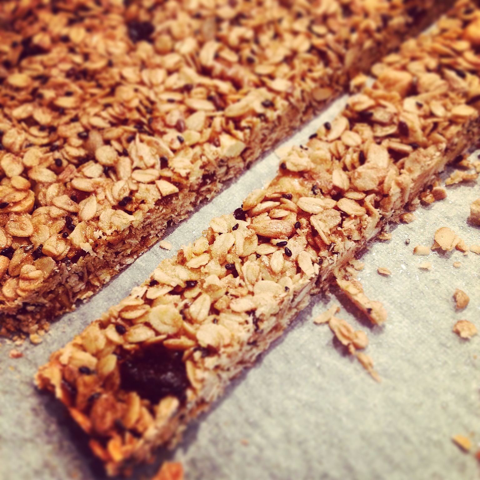 Una volta fredda trasferisci la granola su un tagliere e con un coltello affilato ritaglia dalla forma le tue barrette della misura desiderata. Conservale in una scatola di latta.