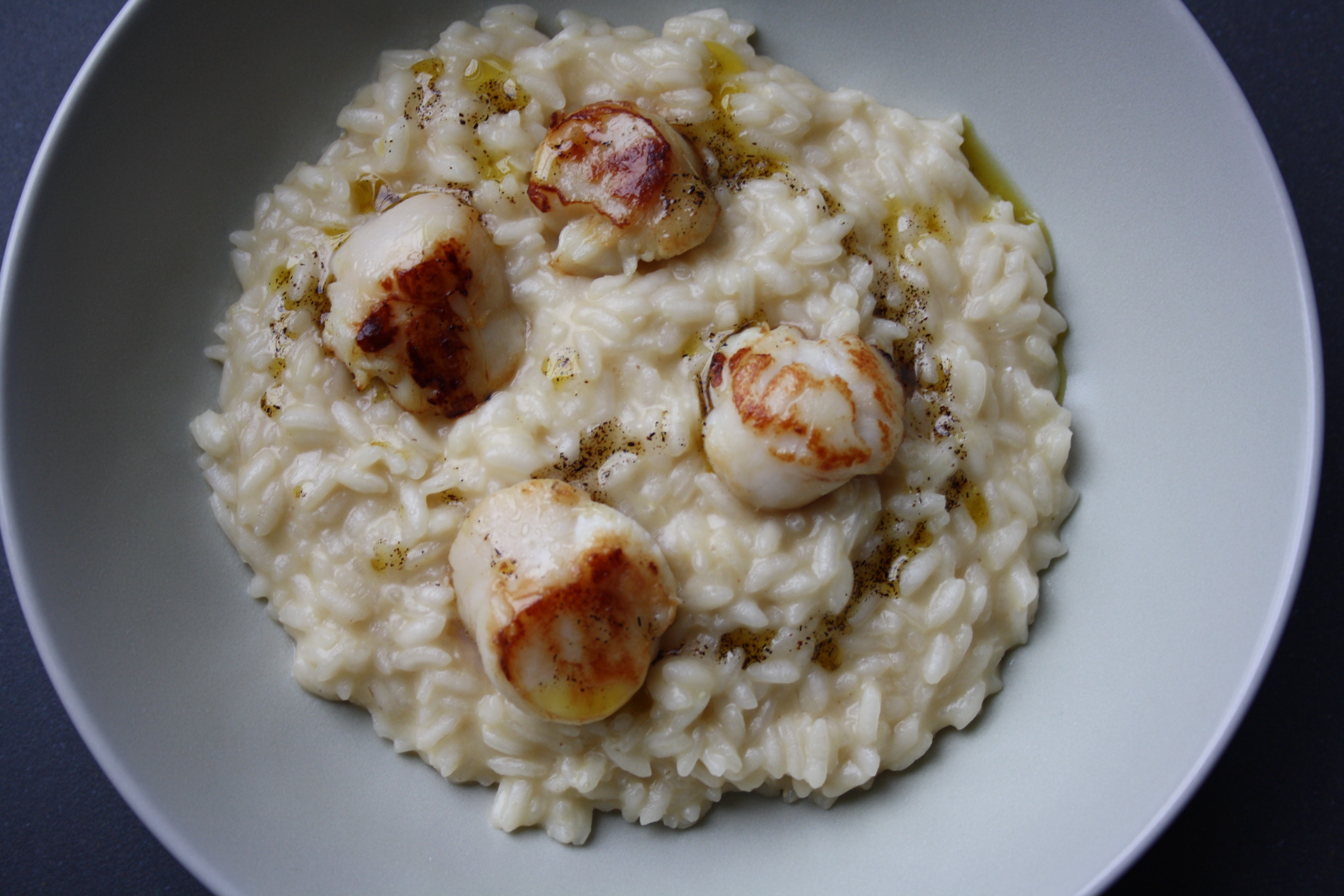Impiatta il risotto disponendo le cappesante grigliate sulla superficie e irrorando con un cucchiaino di olio alla vaniglia. Io ho anche spolverizzato le capesante con un pizzico di sale in fiocchi affumicato, che ha dato un’ulteriore nota profumata al piatto!