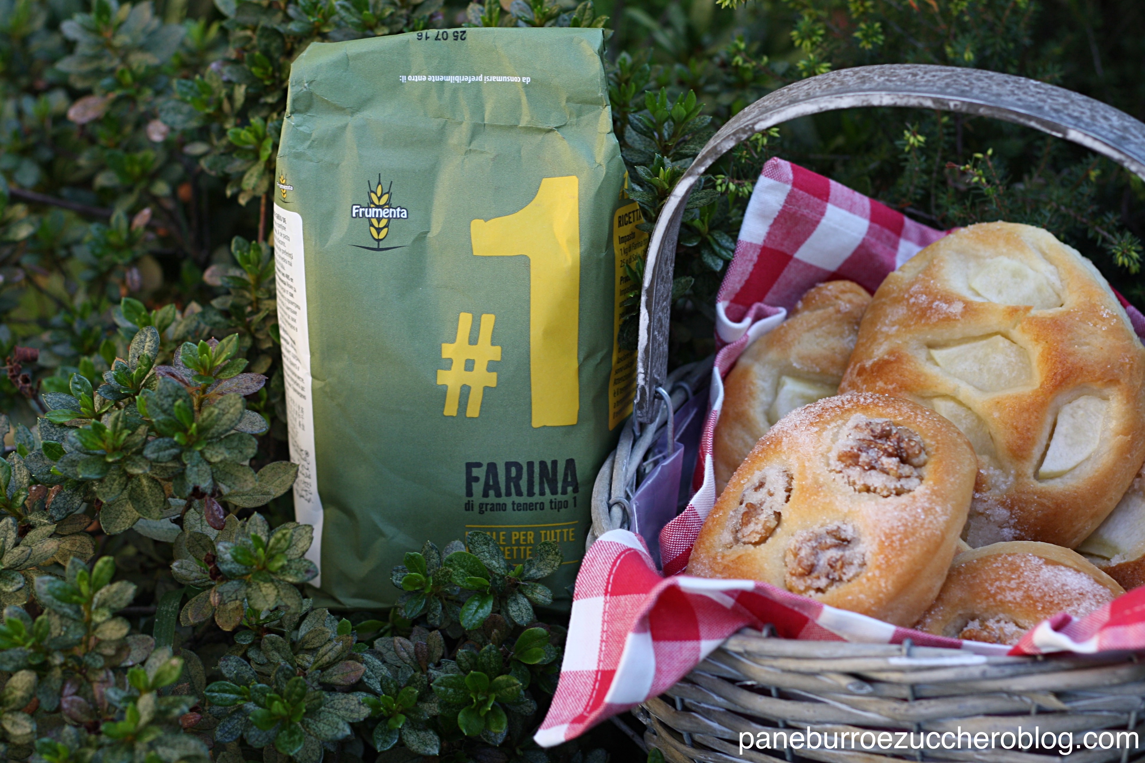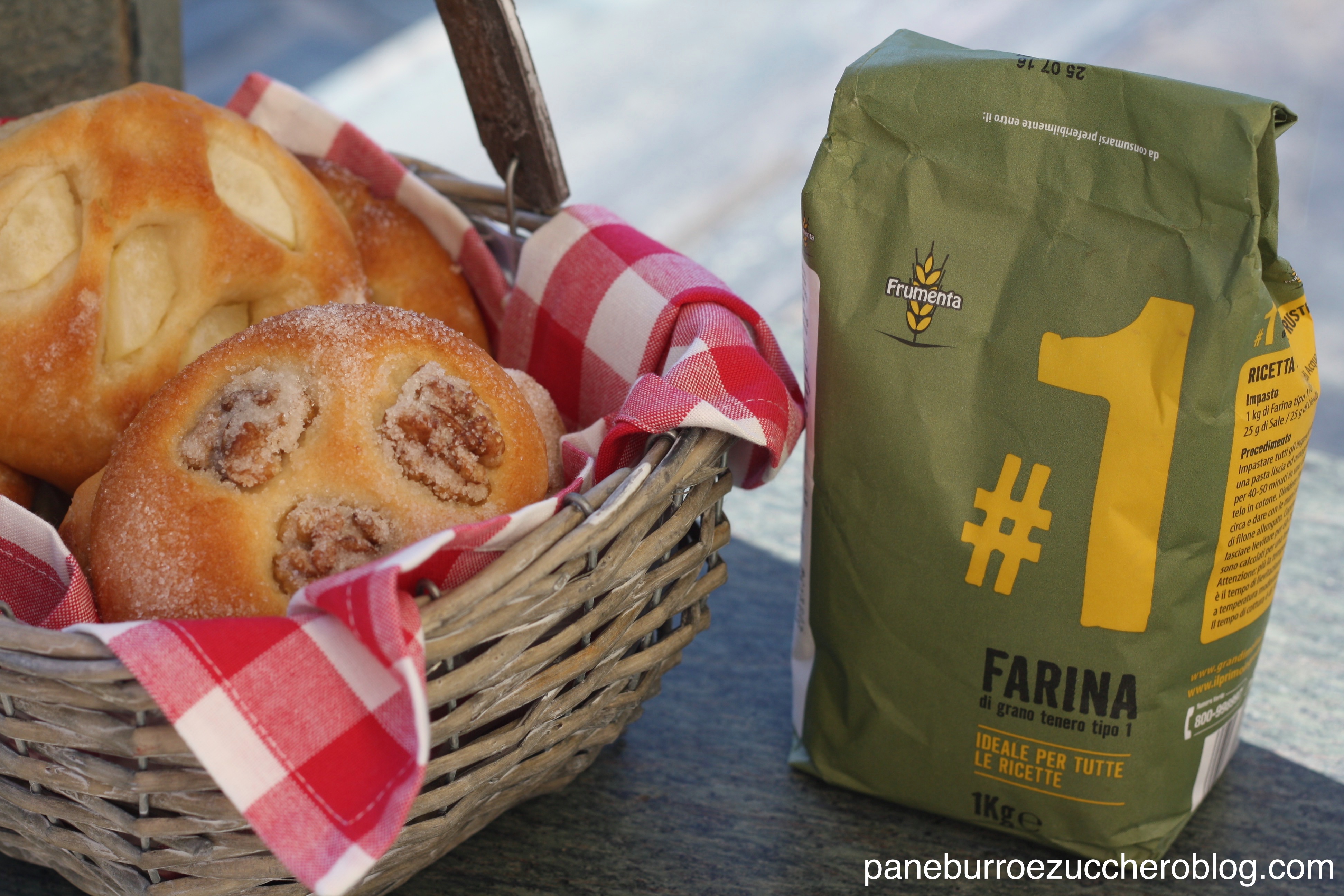 Se penso alle focaccine dolci mi viene in mente cappuccetto rosso che saltella nel bosco con il cestino di vimini pieno di soffici pagnottelle zuccherate ancora calde. Che semplice delizia di altri tempi! Ho voluto realizzare queste focaccine dolci in occasione del contest “I lievitati della nonna” organizzato da Cucina Semplicemente per condividere una merenda che facevo con mia nonna Maria, che andava matta per questa focaccia dolce. Per personalizzare la ricetta ne ho fatte due varianti: con le noci, per un effetto più croccante e con le mele per un risultato più morbido e succoso. Naturalmente si può anche fare la focaccia in un’ unica teglia rettangolare.