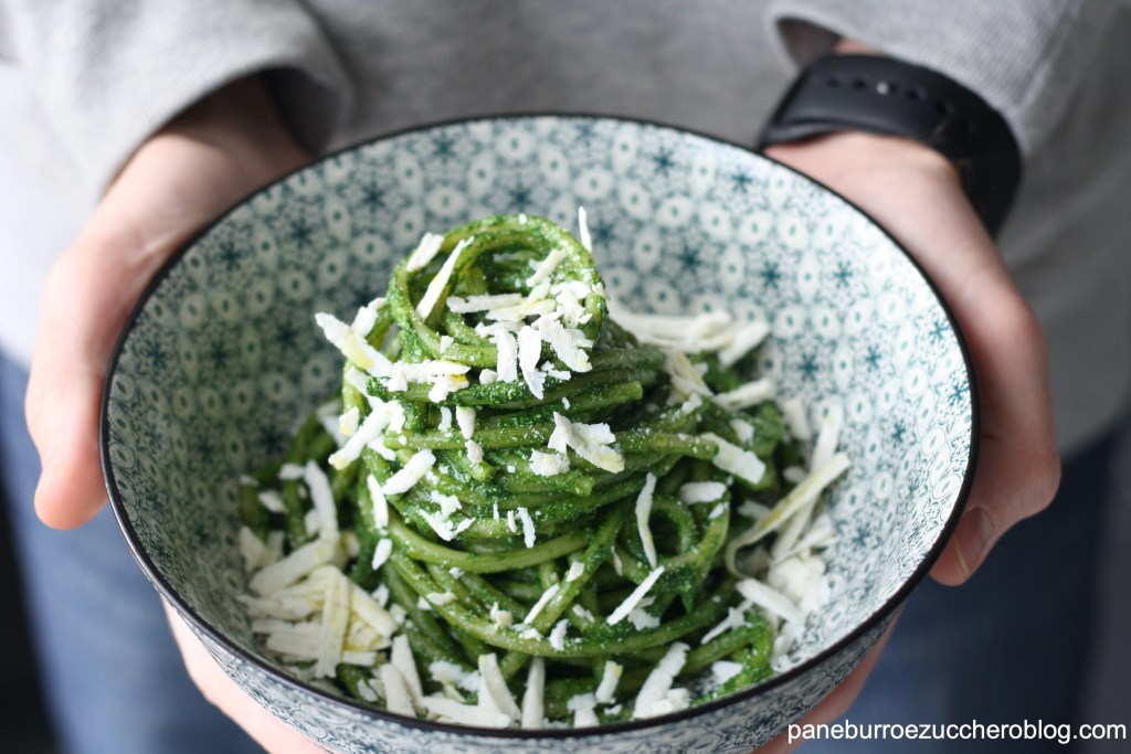 Questo post è giusto un pro-memoria per quelle volte in cui ho voglia di cucinare un semplice piatto di pasta – rigorosamente integrale per noi – vegetariana che sia veloce e facile da fare ma ovviamente molto buona e possibilmente vegetariana. Il pesto di cavolo nero è un ottimo modo per consumare questo splendido ortaggio e si può utilizzare anche su crostini di pane o di polenta, per condire verdure al forno o su una fetta di farinata appena sfornata… su un tomino… infiniti utilizzi, è buonissimo sempre!