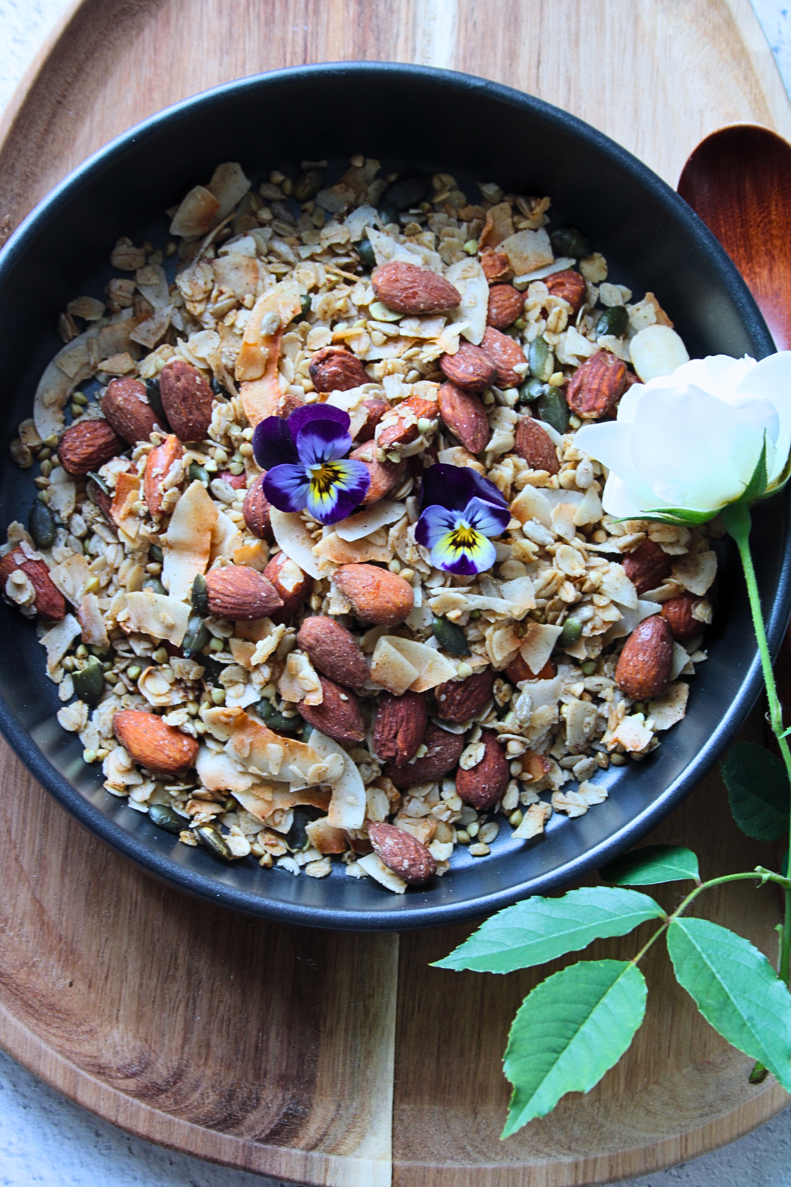 In estate mi piace fare questa colazione super fresca, colorata, un po’ cremosa, un po’ crunchy con tanti ingredienti buoni, sani, ricchi di benessere! Mi fa partire con la giusta energia! Il vero “game changer” è la granola fatta in casa, provate a farla anche solo una volta e non vorrete più mangiare quella confezionata! Questa è la mia versione preferita, dolce il giusto, croccante ma friabile, con un tocco magico di vaniglia e sale che mi fa impazzire!