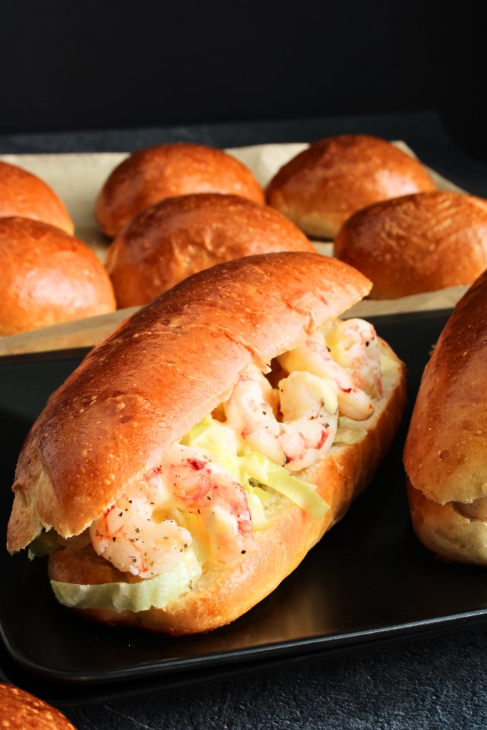 - 16 gamberoni sgusciati e puliti (in teoria si dovrebbe usare l’astice dato che si chiama lobster roll, in Islanda erano gamberi, vedete voi cosa utilizzare, sarà ottimo in entrambi i casi)